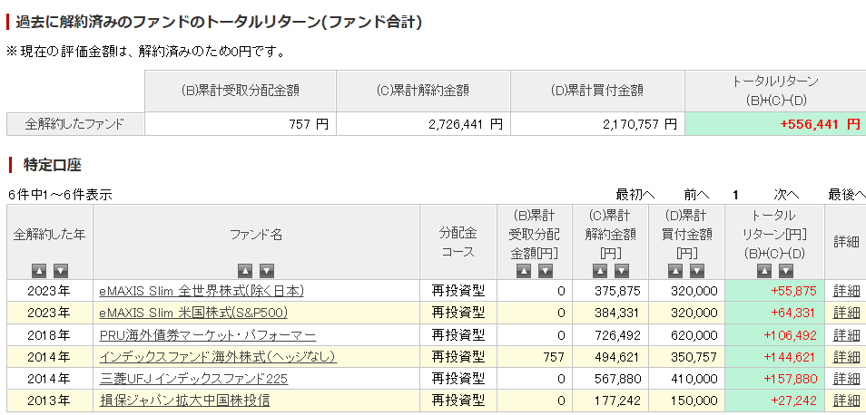 楽天証券で預けていた分のみのトータルリターンです。